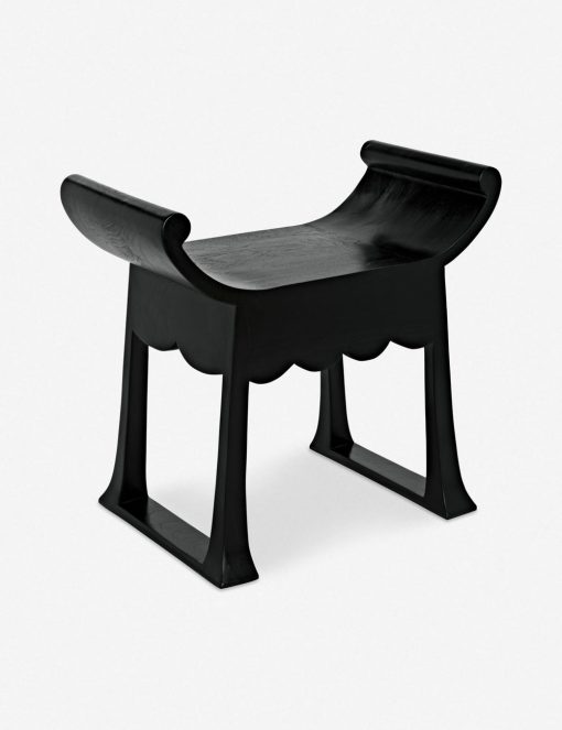 An ornate silhouette is balanced by a sleek black finish in this unique side table. The scrolling top, scalloped skirt, and flanged legs add to this end table’s signature appeal while reflecting an elevated tone for a eclectic space or transitional look.
