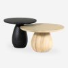 We love the dynamic appeal a bunching table can bring to your living space. With a compact footprint and low profile, this small coffee table can float around your look, offering versatile tablespace for decor, books, or drinks. A chunky tulip base brings a sculptural tone with crisp impact to this wood coffee table design.