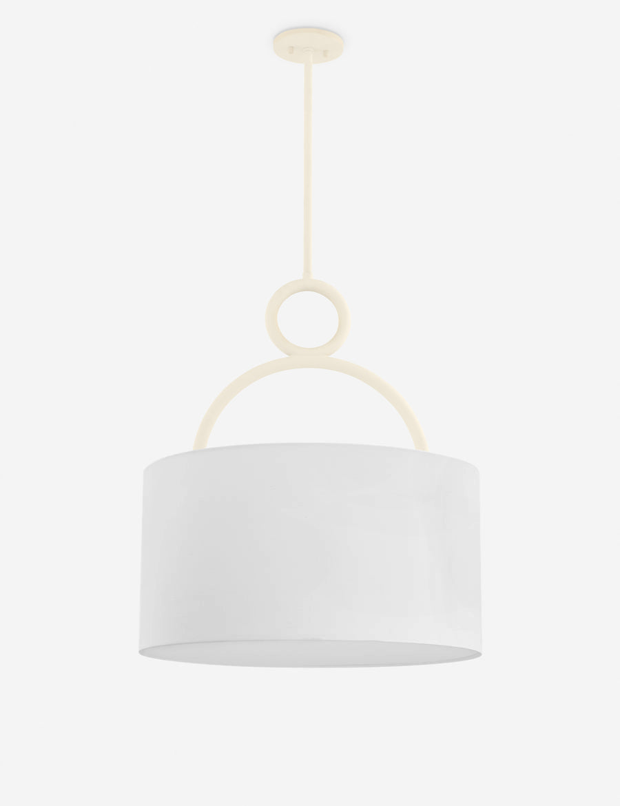 This modern chandelier brings a crafted look and feel to your overhead lighting. With its shapely frame constructed from iron and finished in a textured cream tone, this chandelier is a sculptural addition to any space. We’d style it above a dining table or coffee table or in a formal sitting room.