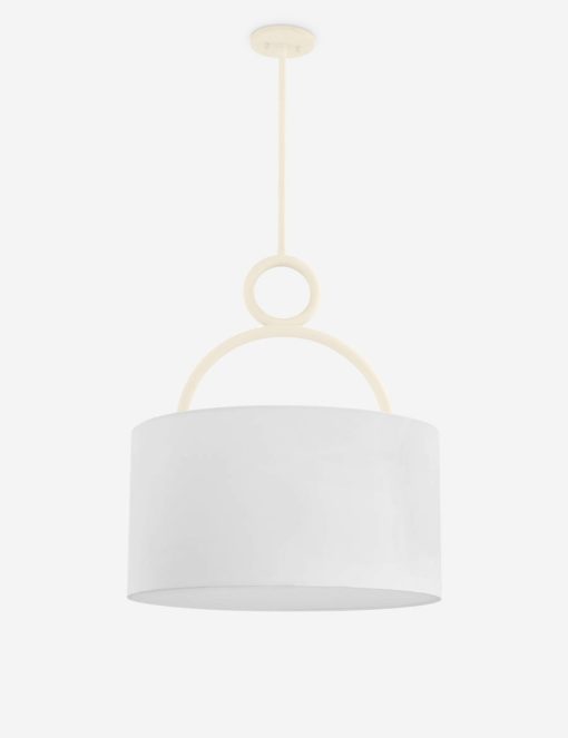 This modern chandelier brings a crafted look and feel to your overhead lighting. With its shapely frame constructed from iron and finished in a textured cream tone, this chandelier is a sculptural addition to any space. We’d style it above a dining table or coffee table or in a formal sitting room.