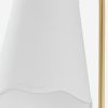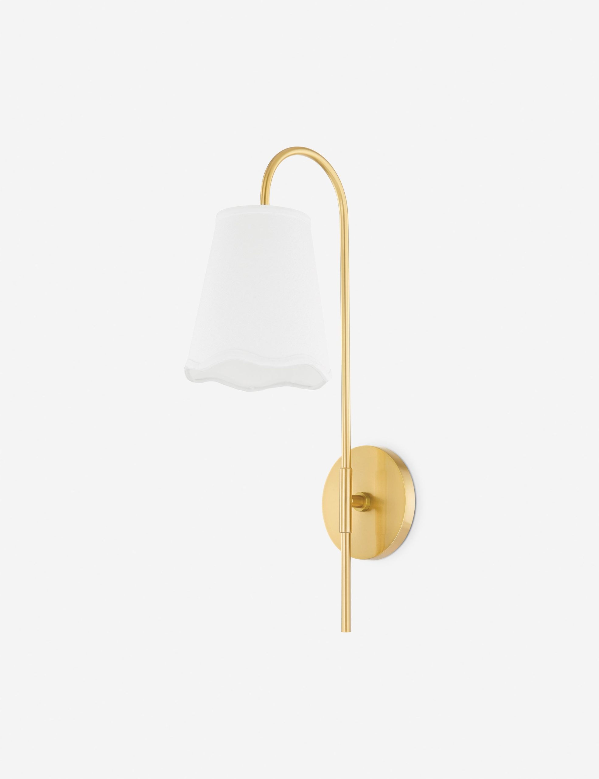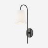 Traditional notes blend with a playful elegance in the Jessica sconce. The metal arm takes a swanlike line into a white linen shade with a wavy edge for a subtle floral charm. We love this wall sconce styled in pairs for elevated lighting in a transitional home design.