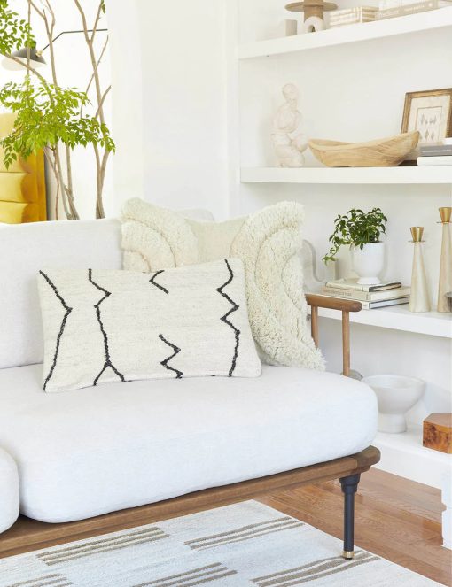 Inspired by traditional Beni Ourain designs, the neutral-hued Moroccan Flatweave Pillow features a simple, sketched pattern. Add it to a sofa with other earthy or subdued tones for light and airy style. The Sarah Sherman Samuel Collection features tonal textures, earthy hues and a modern take on traditional patterns.