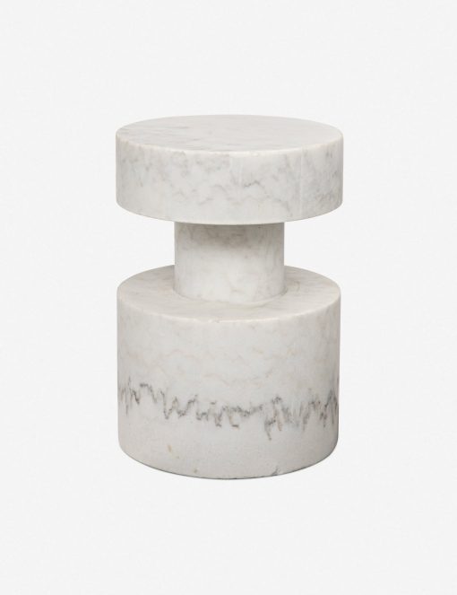 A bold, modern accent table that’s perfect for luxe-minimalist spaces. The cylindrical design features a carved section, creating a playful balance and adding visual interest to the marbled stone.