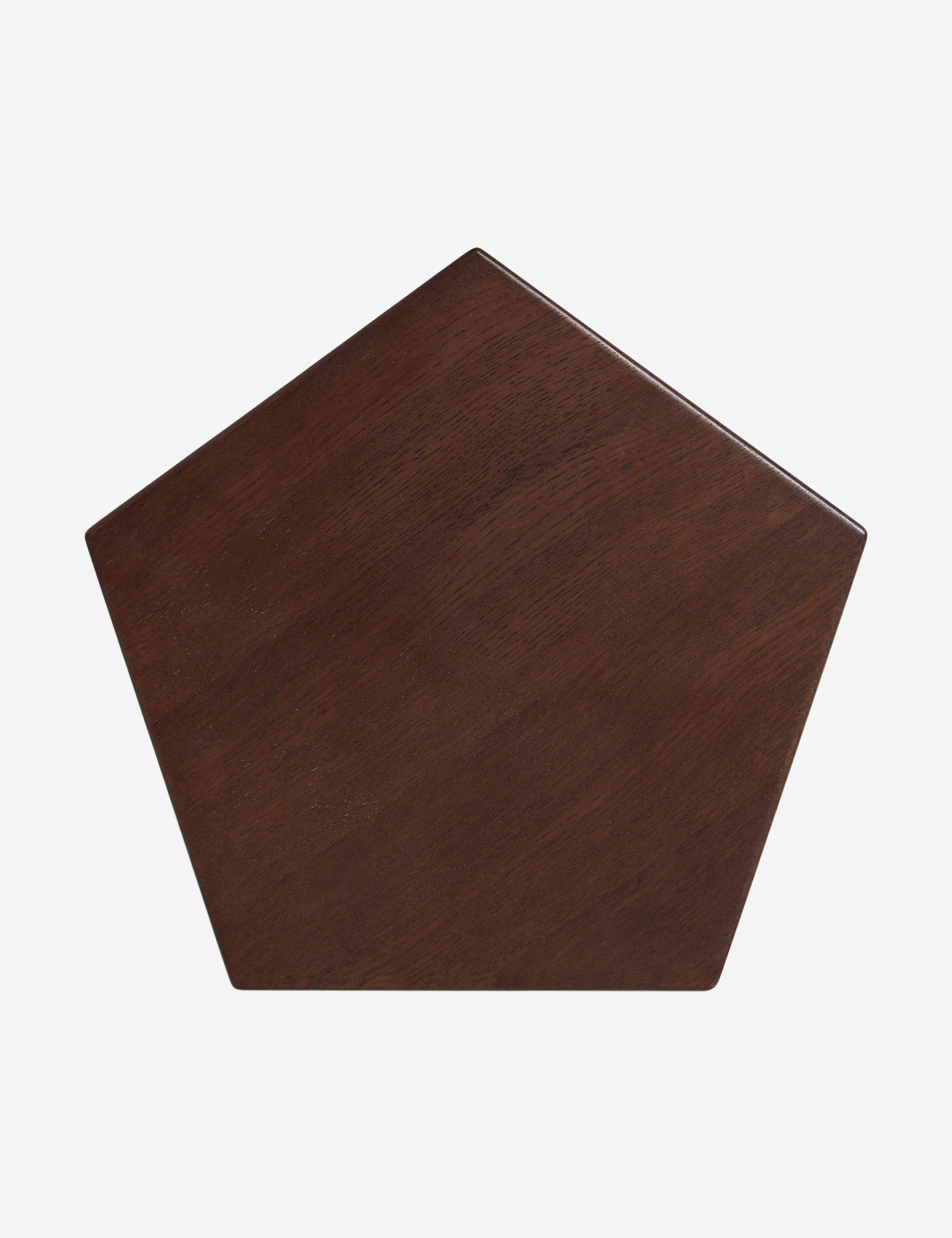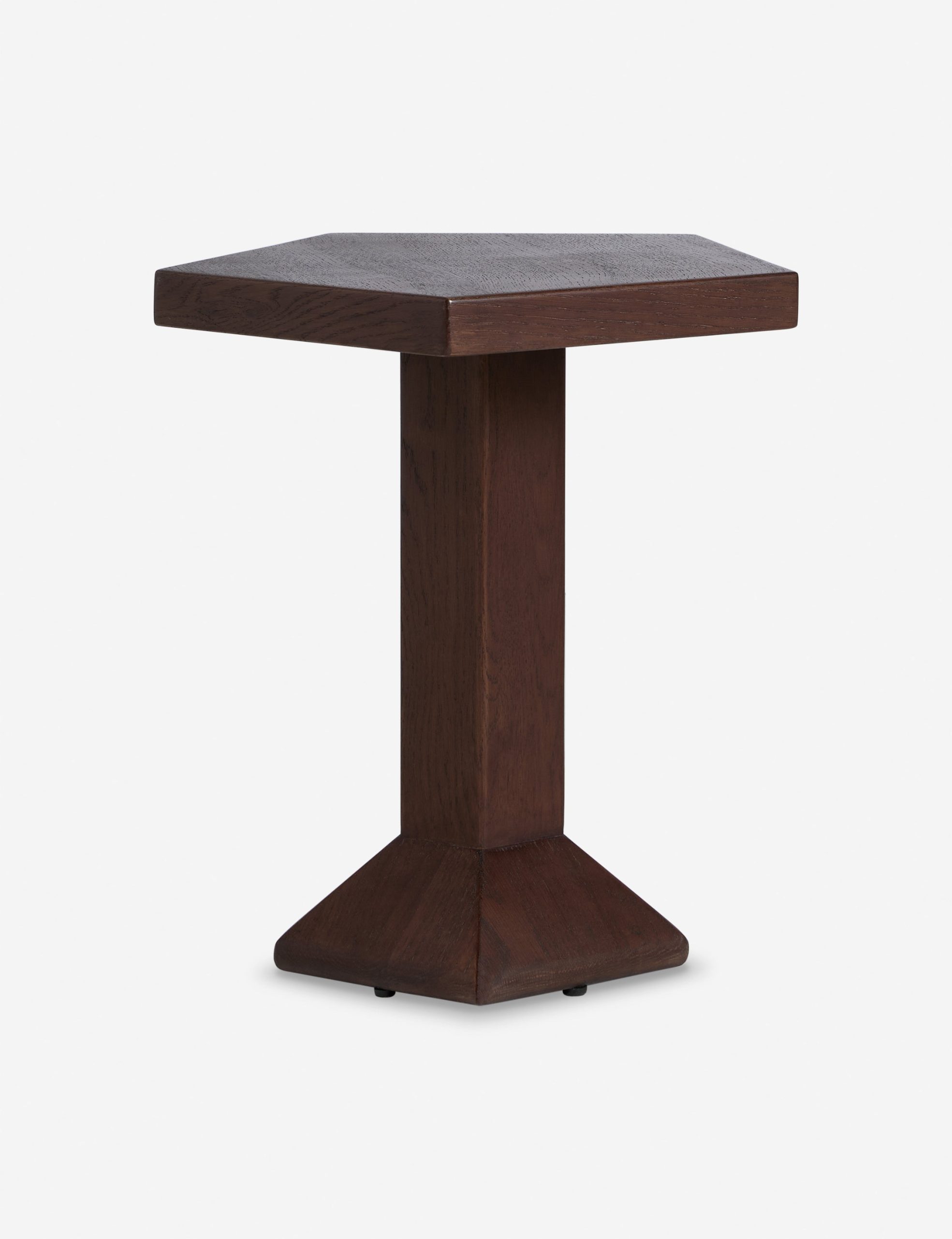 Elevate your edit with a modern side table rooted in natural grain warmth. Rainey’s pentagonal shape offers a strong geometric character reflected in the angular lines of its pedestal base. Pair this side table with soft silhouette seating for a lovely play of contrast in form.