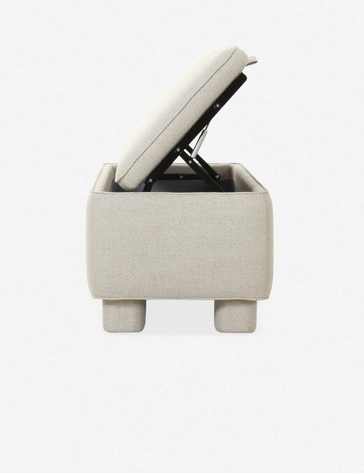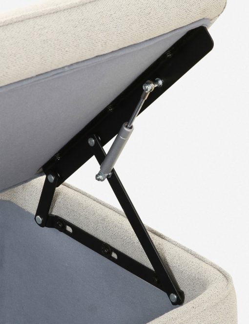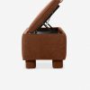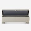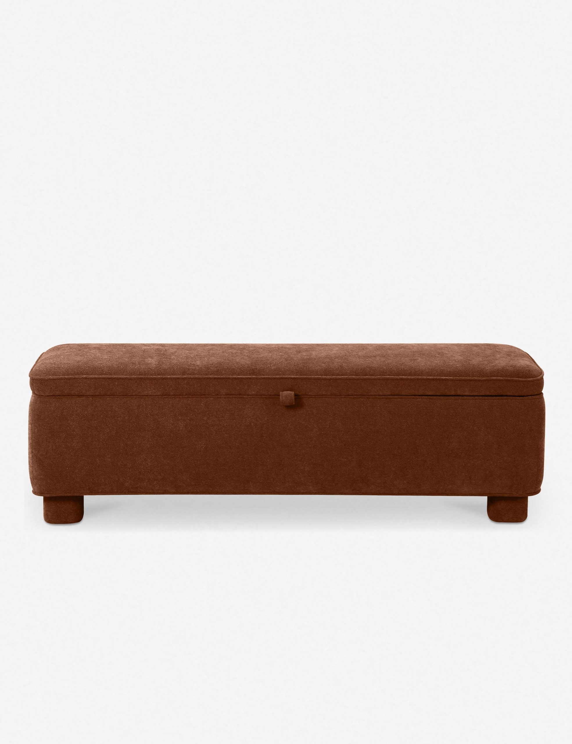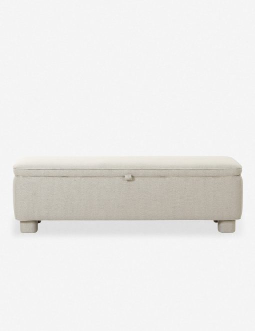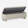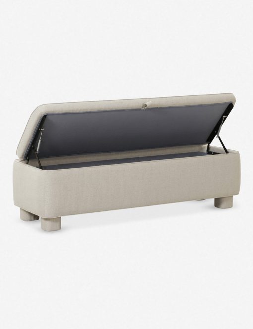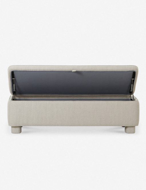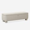 This upholstered bench is infused with timeless character, featuring storage inside for linens, pillows, and blankets. Rounded legs add polish, perfect for a refined yet grounded space.