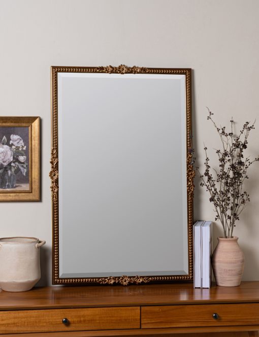 Beauty is in the small touches when it comes to traditional design. Whether you want to add light and depth to the room or need a functional accent for your entryway or powder room, the Cantara mirror is a stylish showstopper. A beaded border with floral details brings endless charm to this decorative mirrorâsetting the tone for transitional appeal.