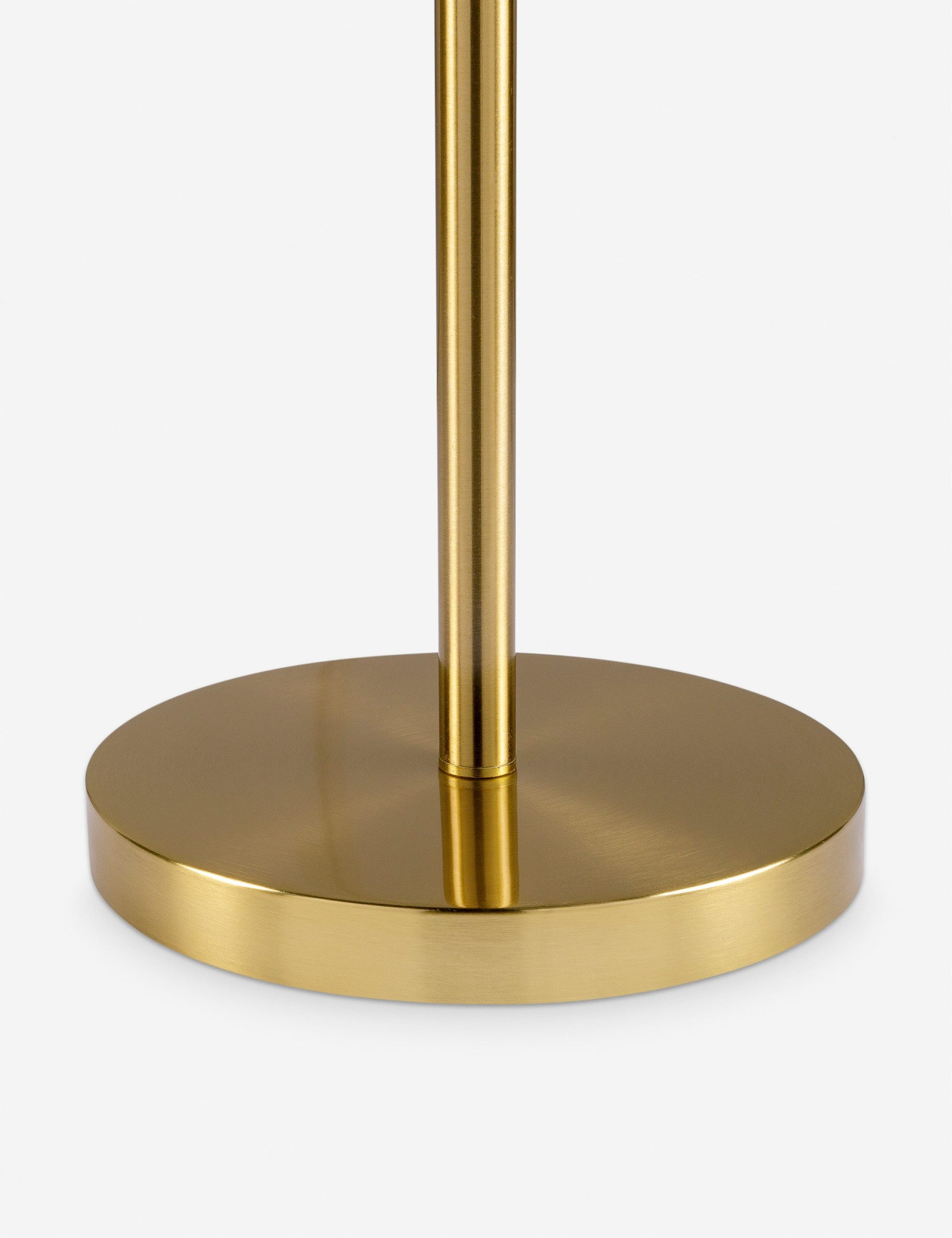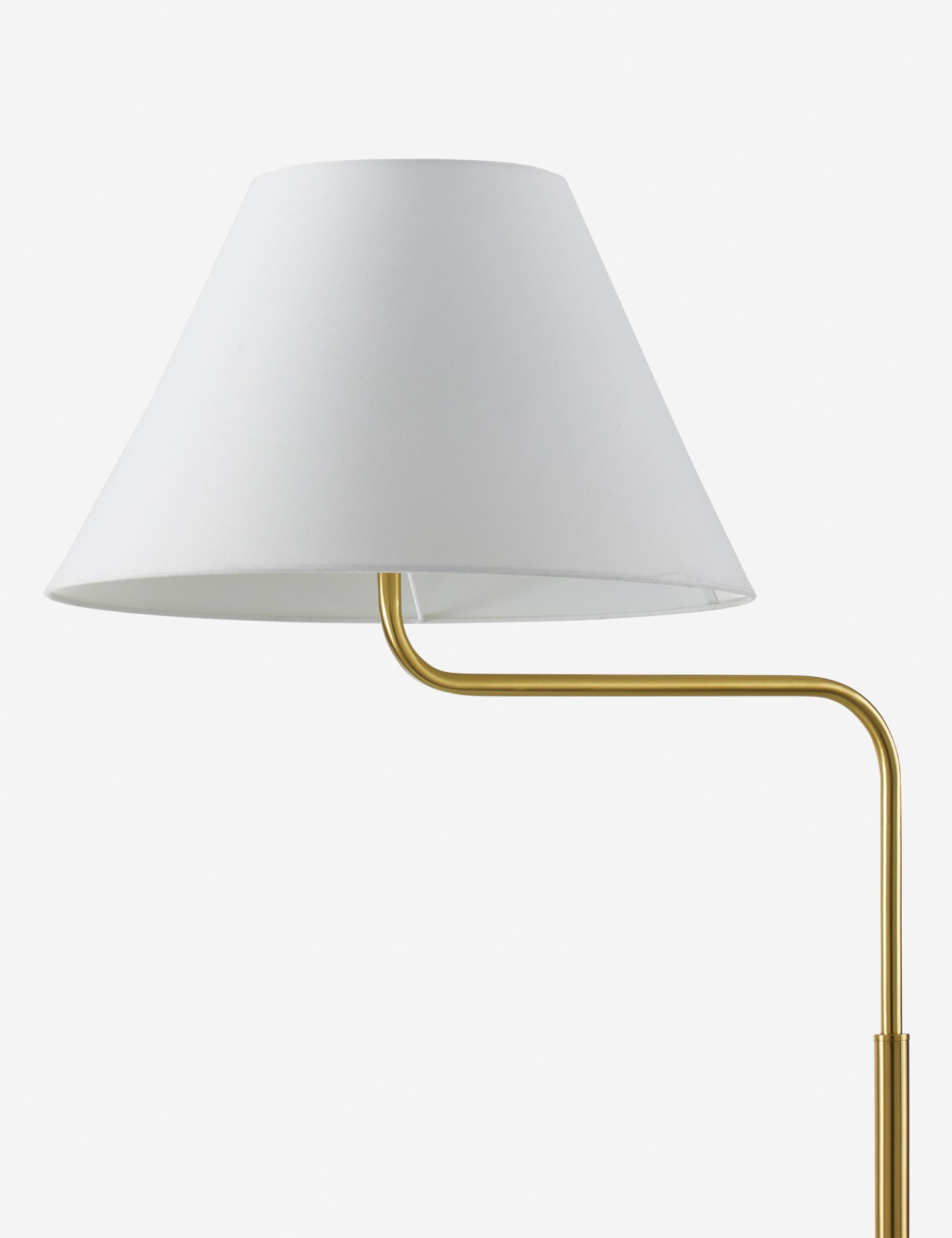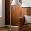 Minimalist lines define the Ellingford floor lamp. The slender stem takes an angular bend, cutting a chic silhouette that makes it the perfect reading lamp next to your sofa or a comfy chair. We love how the brass finish pops against the white shade, offering a versatile addition to modern palettes.