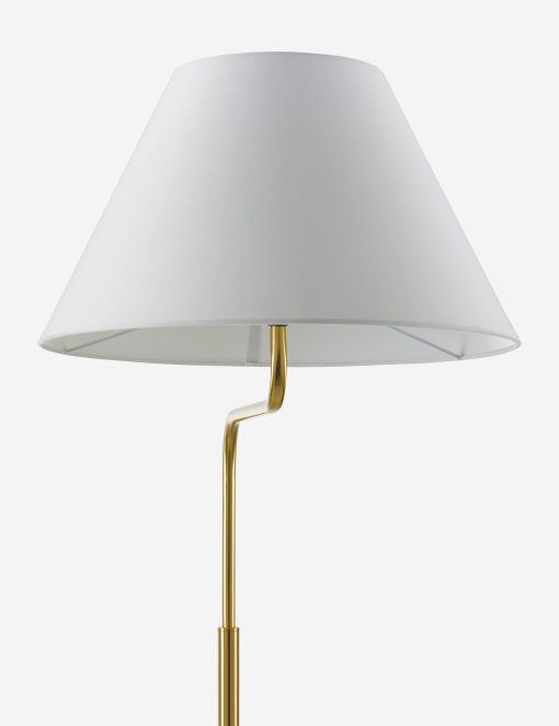 Minimalist lines define the Ellingford floor lamp. The slender stem takes an angular bend, cutting a chic silhouette that makes it the perfect reading lamp next to your sofa or a comfy chair. We love how the brass finish pops against the white shade, offering a versatile addition to modern palettes.