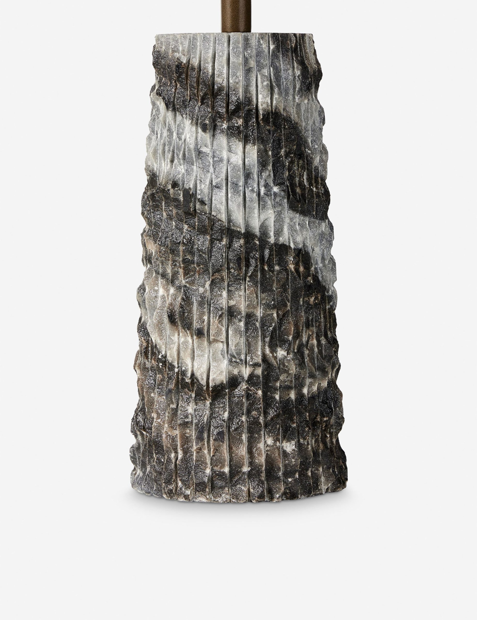 Bring a textural moment to your design with the Fallow side table. The rough marble base is channel-grooved, creating a sense of movement in the striated stone. We love the sleek contrast of the brass-finished stem and polished round top—the perfect end table for sumptuous seating.