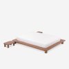Furniture design studio Sun at Six seeks to help create open, natural spaces with their line of minimal furniture. The Kiral bed pairs a low-slung design with an extended platform that offers the perfect surface for all your bedside essentials. The bed frame is made with real cuts of solid wood, offering a unique grain and character to each piece.
