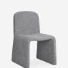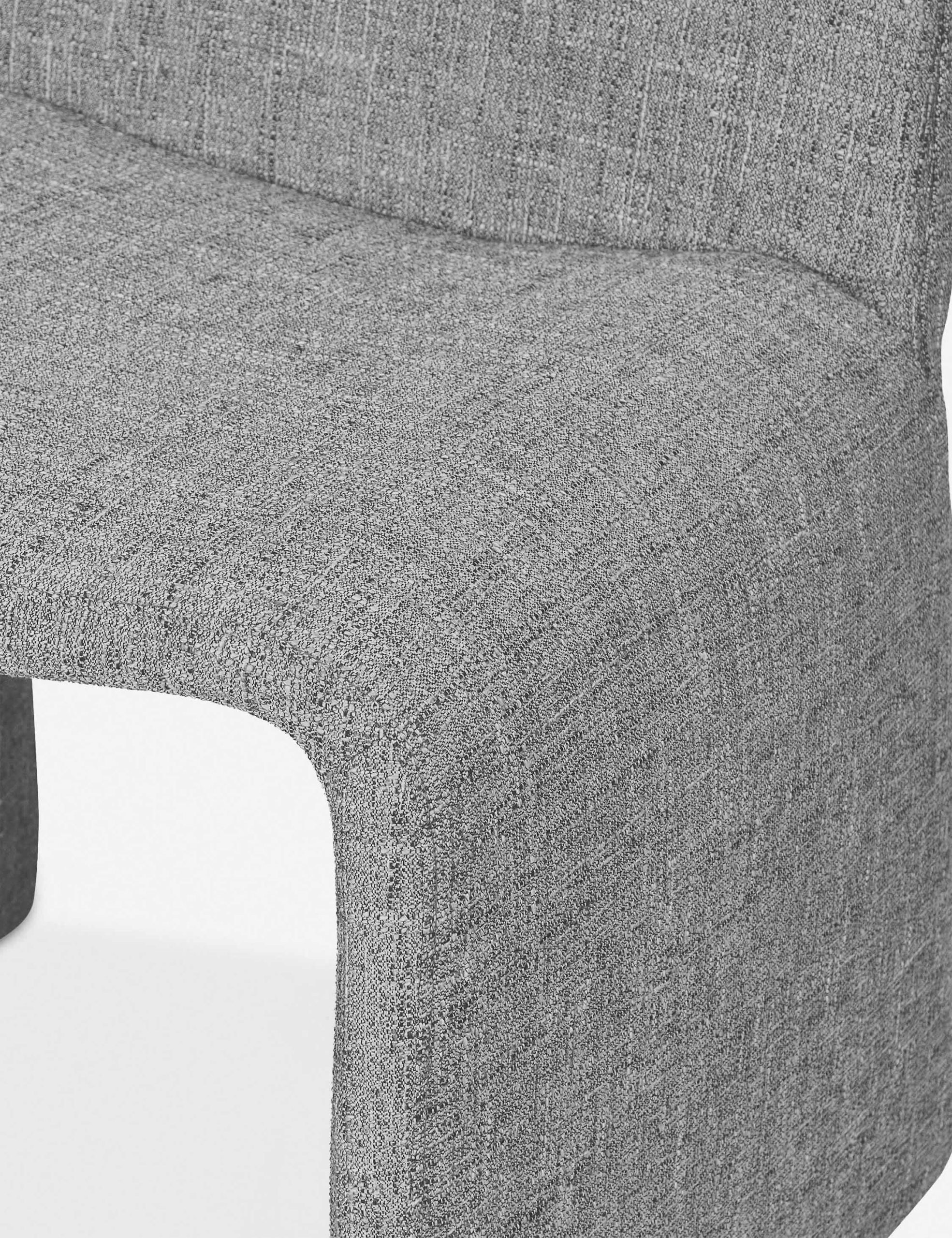 Oval forms inspire the modern silhouette of the Renier dining chair. Its graceful curves are subtle and understated, with a chic dip in the seat to deliver comfort and support. The heathered fabric is a soft textural complement to any setting, creating a versatile dining room chair that’s sophisticated yet welcoming.