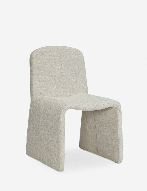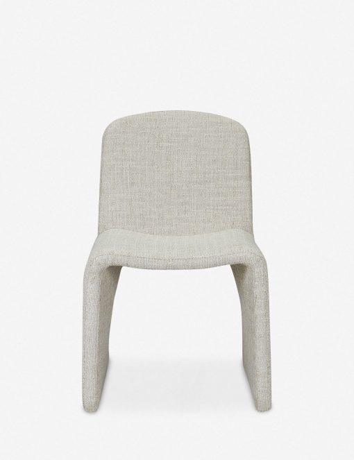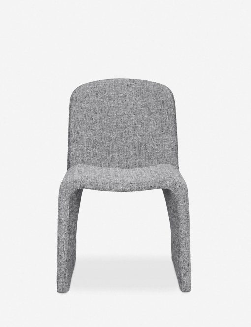Oval forms inspire the modern silhouette of the Renier dining chair. Its graceful curves are subtle and understated, with a chic dip in the seat to deliver comfort and support. The heathered fabric is a soft textural complement to any setting, creating a versatile dining room chair that’s sophisticated yet welcoming.