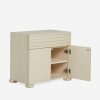 A beautiful wood construction and textural elements bring an understated elegance to the Beck nightstand—the perfect piece for bedside storage in a transitional bedroom edit. The light finish and sleek grooves set off this design—with a drawer and lower cabinet for nighttime essentials.