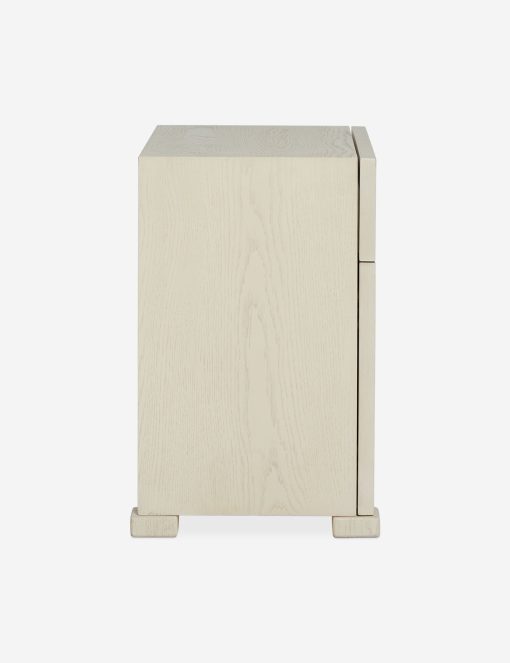 A beautiful wood construction and textural elements bring an understated elegance to the Beck nightstand—the perfect piece for bedside storage in a transitional bedroom edit. The light finish and sleek grooves set off this design—with a drawer and lower cabinet for nighttime essentials.