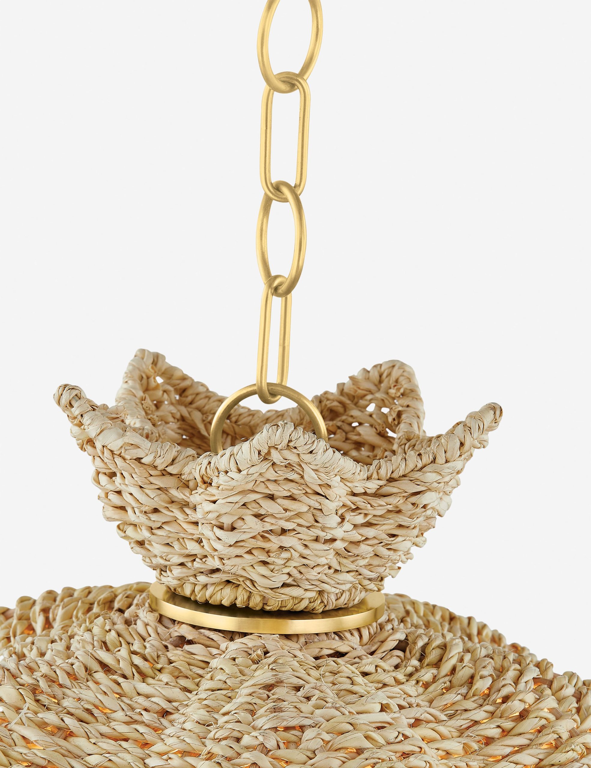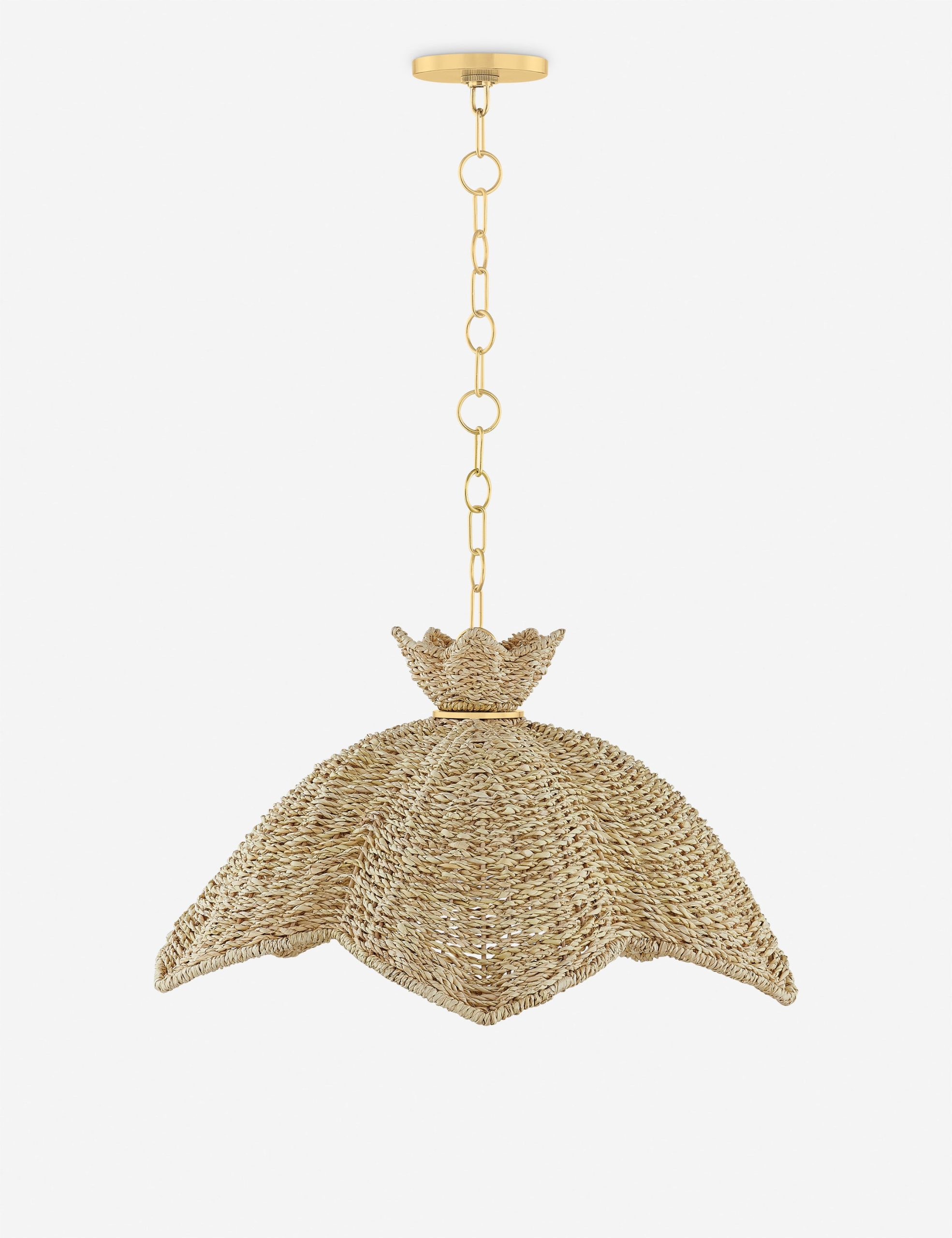 Woven lighting takes a graceful floral form in this basket-style pendant light. The wicker shade features an intricate, trimly tailored weave for an elegant touch of texture overhead. This hanging light blends organic style with refined design elements to offer a balanced feature for modern decor.