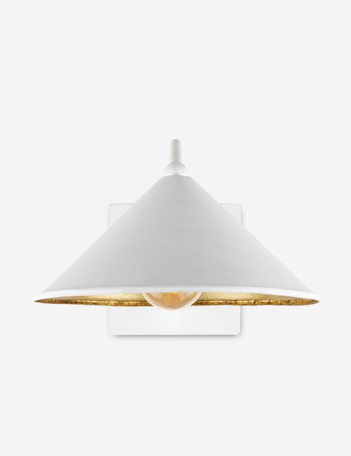 Blending industrial style with a vintage touch, the Marca sconce is a stunning choice for transitional edits. The angular design offers a striking silhouette with a gold leaf lining for warm illumination. This adjustable wall sconce is perfect for directing accent or task light in the room.