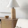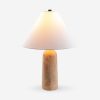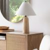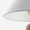 Table light with a grounding touch. This travertine lamp offers the perfect combination of natural impact and tailored elegance with its textural stone base and tapered linen shade. We love its transitional appeal for an entryway or living room console table.