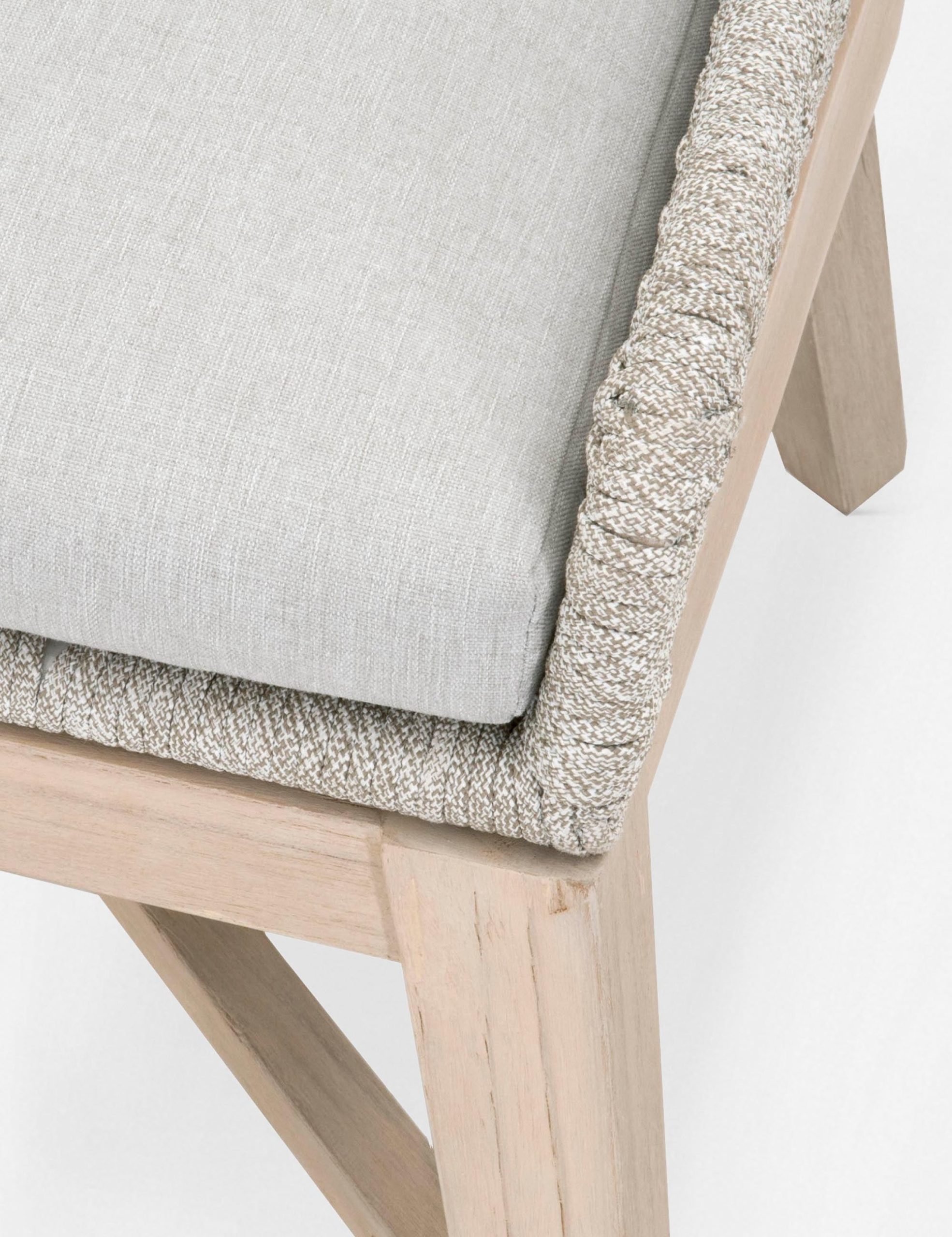 Designed with a low-profile back and a cheeky cutout, this dining chair’s tapered teak legs and removable cushion are ready for both indoor and outdoor styling. We love how the woven rope detailing adds natural textures to the look.