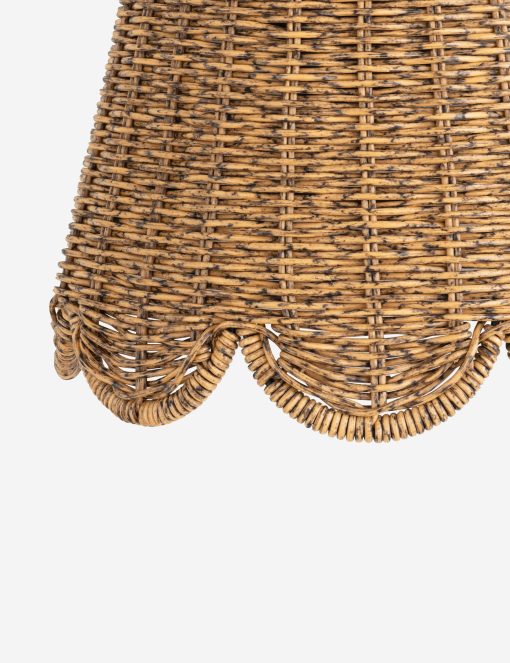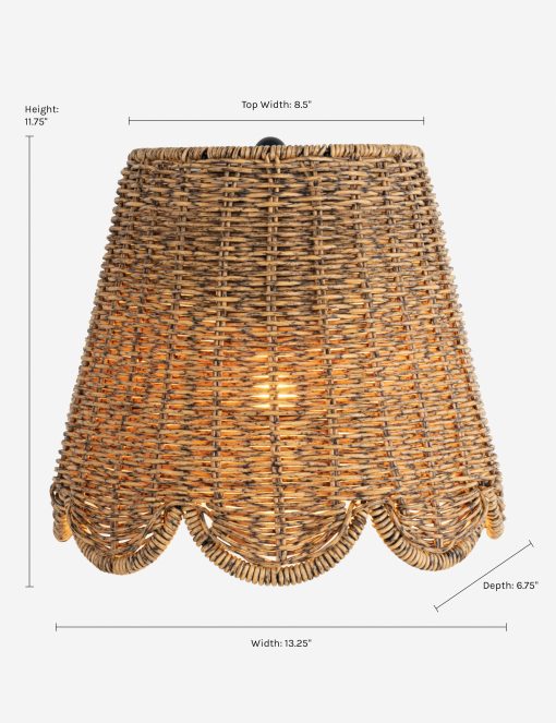 Add a touch of charm to your lighting design with this wicker sconce. The basket shade features a classic tapered silhouette with scalloped edges for a chic look. This sconce light is wet-rated and woven with a durable rattan-like cord to bring fresh texture to outdoor lightingâthe flush mount design offers a compact profile on your wall.