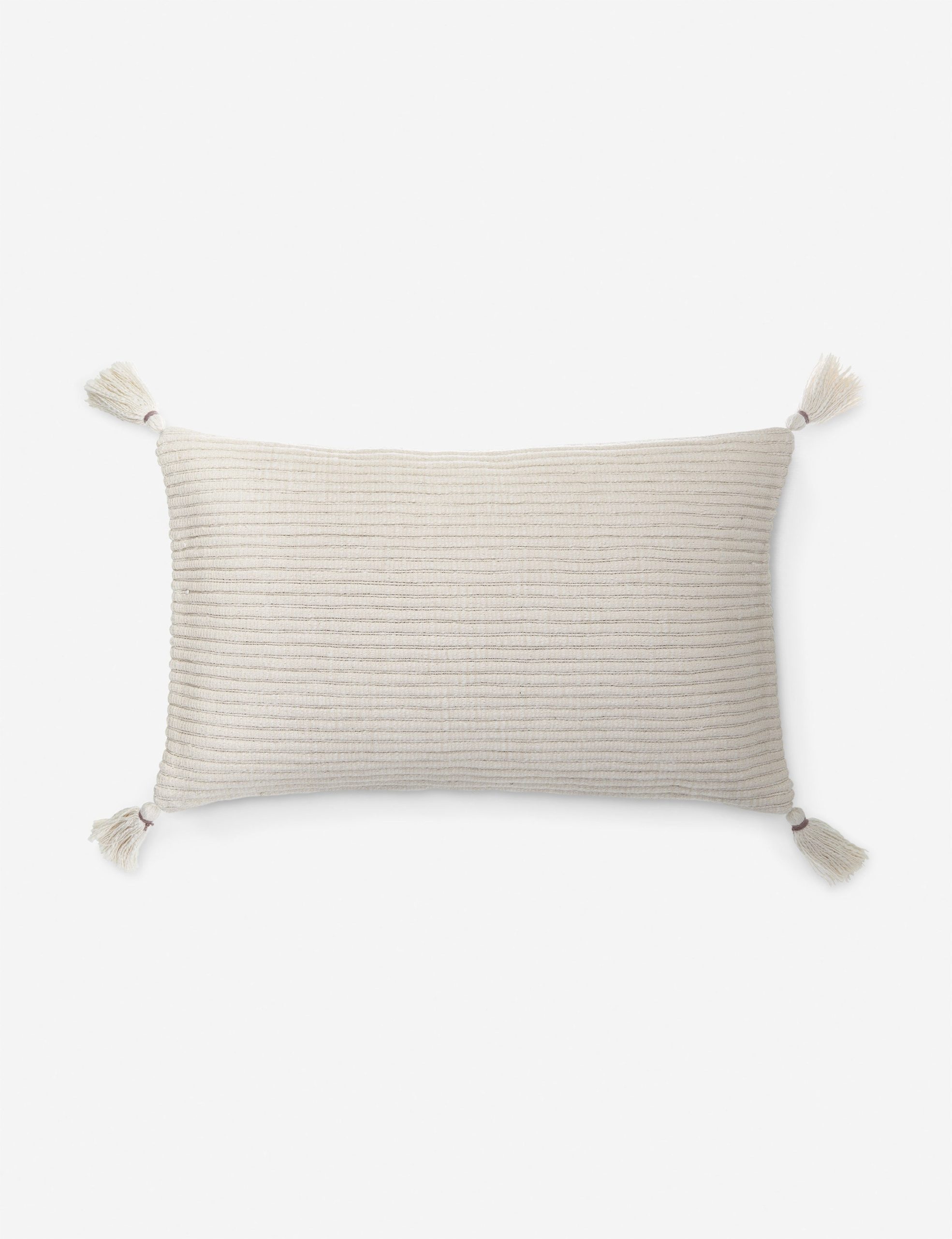 Finish your space with a chic touch of texture. This lumbar pillow features a ribbed design with corner tassels. A touch of color on the tassels gives this design standout appeal, whether styled alone or topping a collection of throw pillows on your bed.