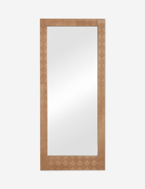 A tonal diamond pattern creates a chic display in this full-length mirror. The large mirror’s wood frame is bold and engaging, offering refined appeal in a living area, entryway, or bedroomâdelivering versatility with impeccable style.