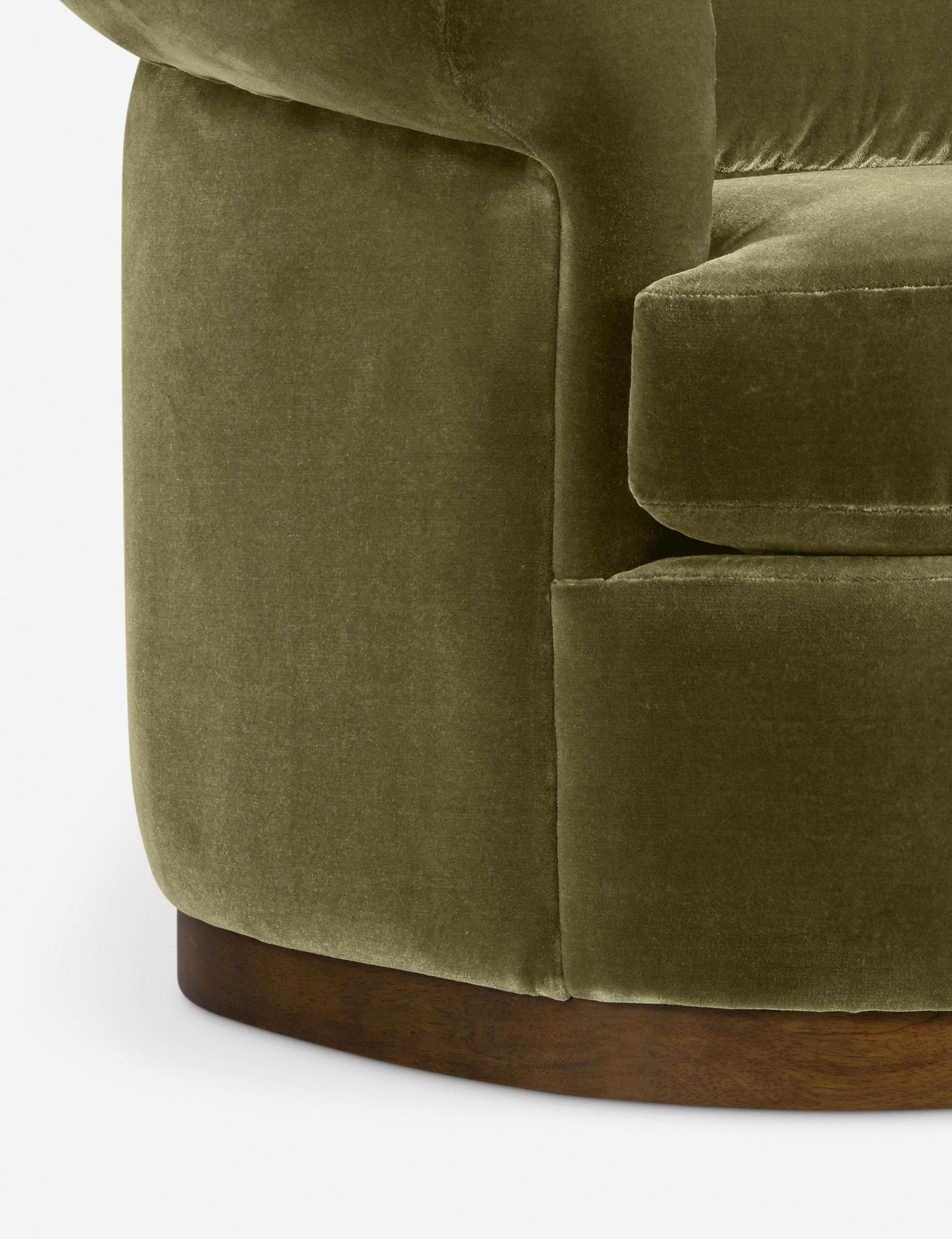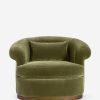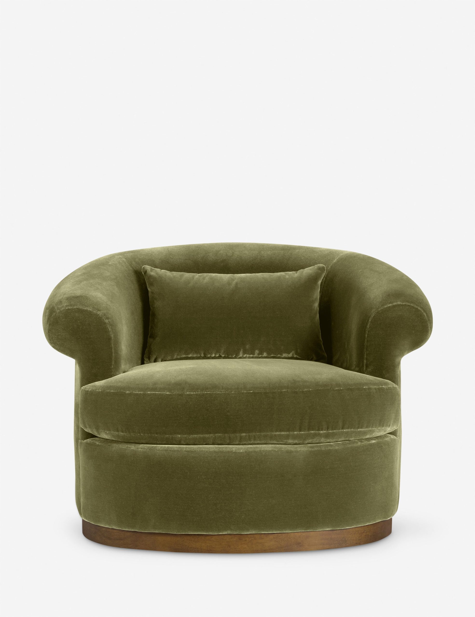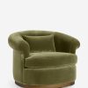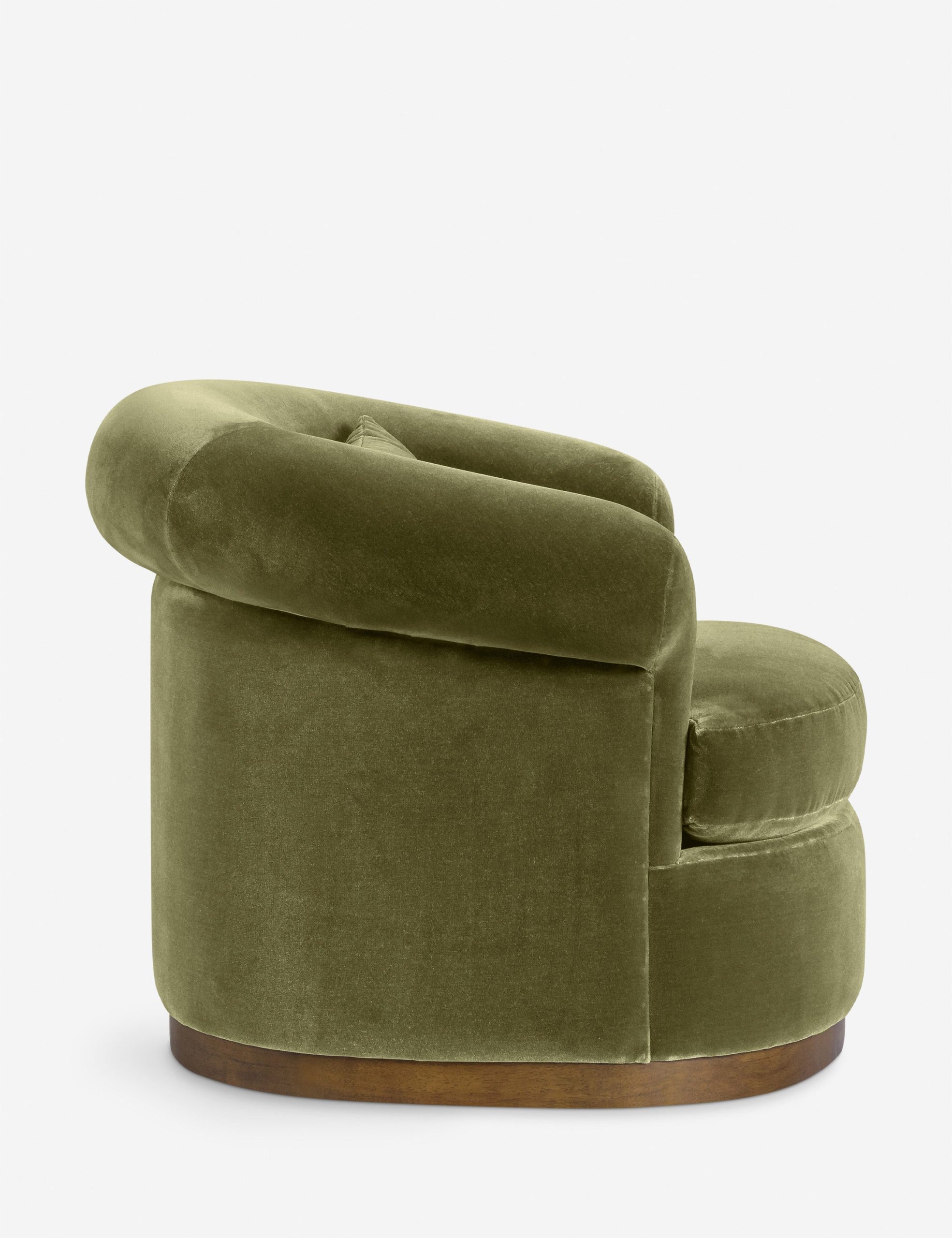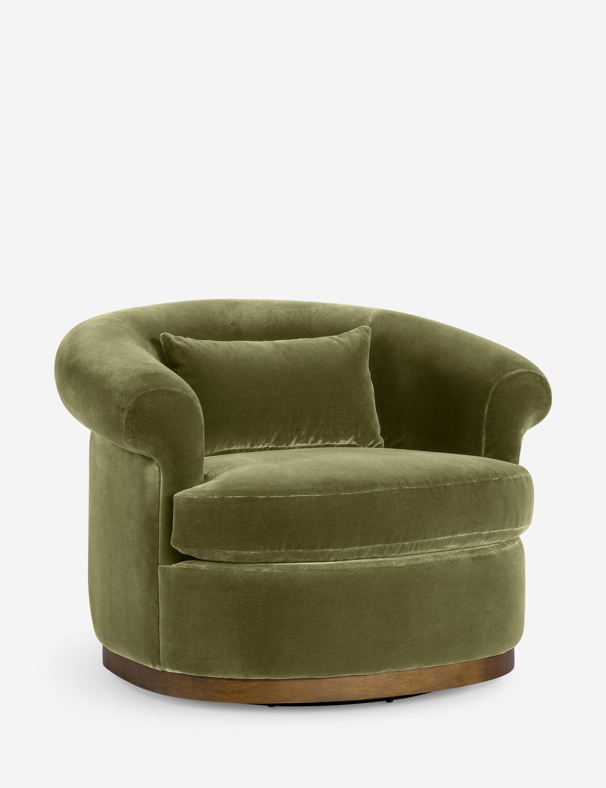 The Rochester chair brings a modern touch to a classic silhouette with its barrel back and rolled arms set on a swivel base. It’s the perfect place to curl up and enjoy a favorite read or good conversation. Plush velvet tailors the look for timeless elegance.