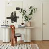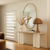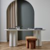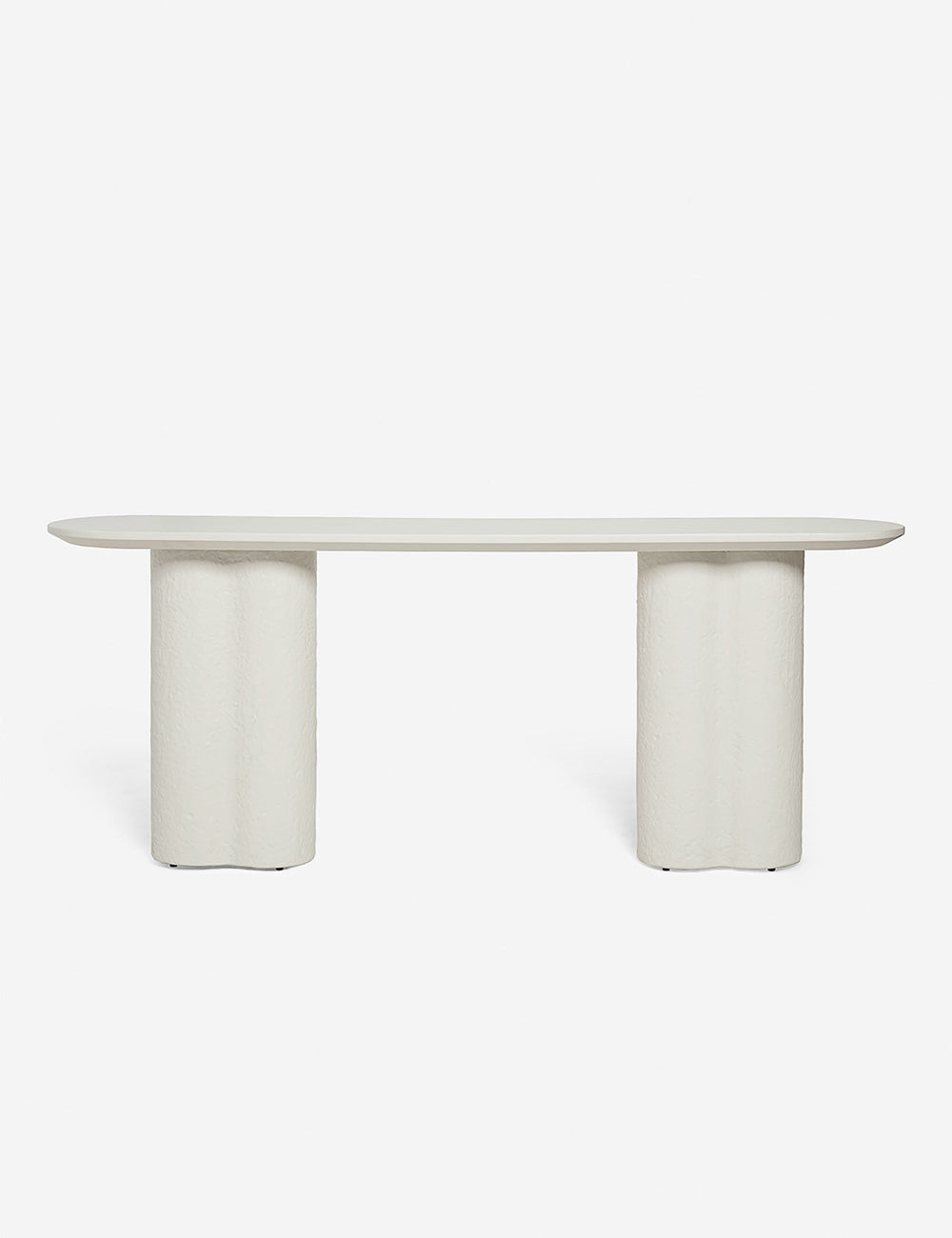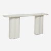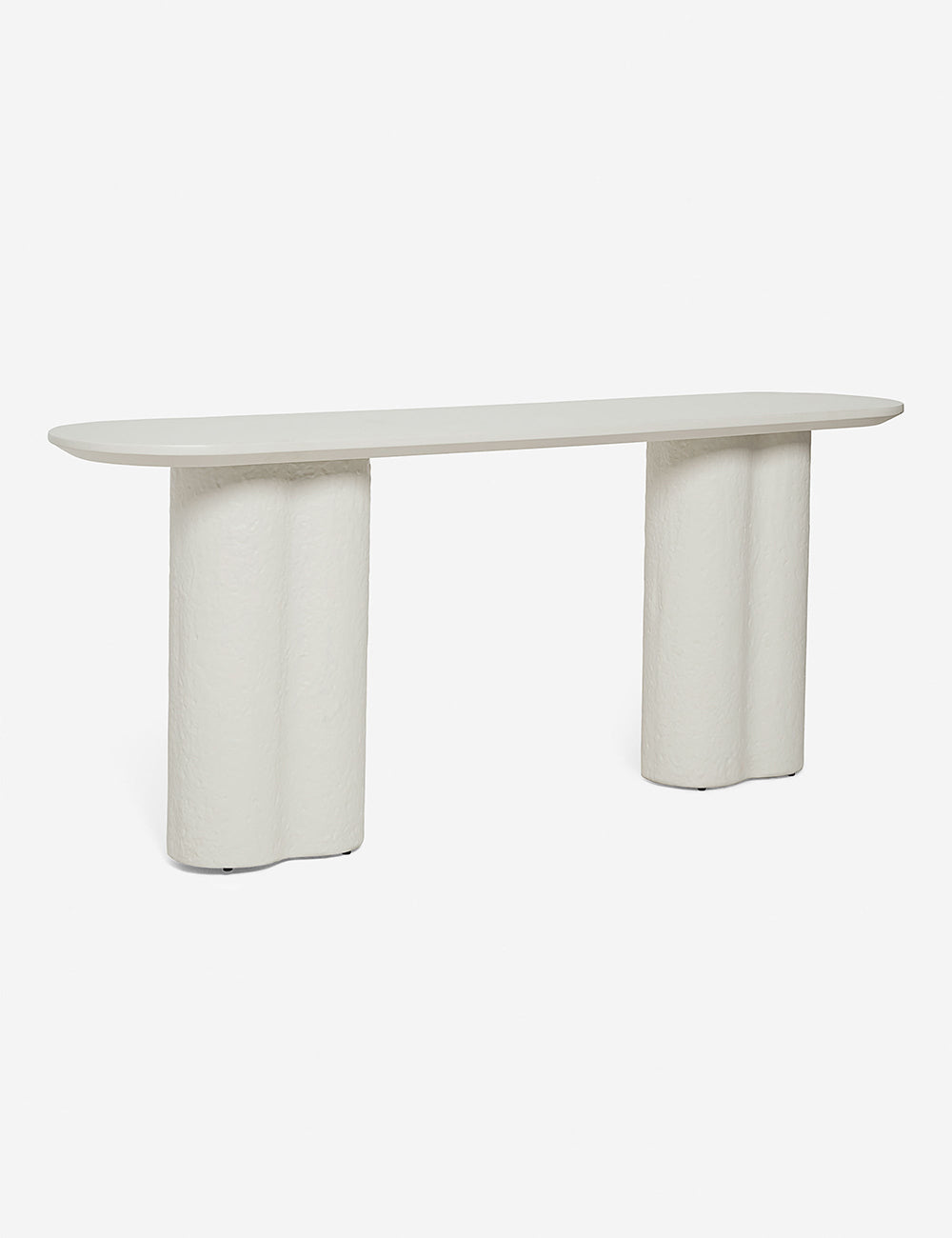 This fiberstone console table offers a soft profile, with its clover-style legs and a polished, oval top. With its rounded edges, this piece is an excellent sofa table, on its own as an entryway table, or outside on your terrace as a bar or buffet. This piece is from our exclusive Sarah Sherman Samuel collaboration and features all the trademarks of her warm, edited style.