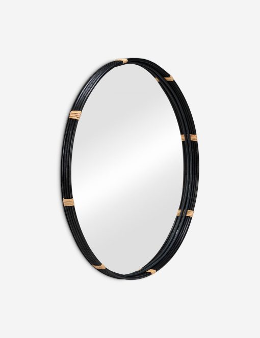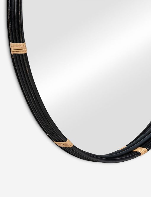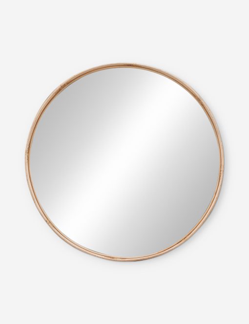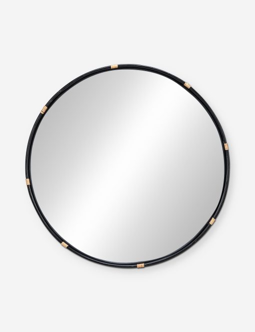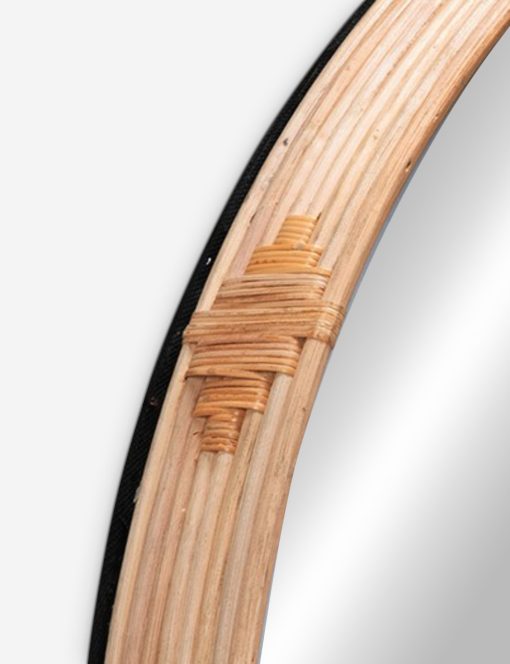 This round mirror may appear simple from a distance, but get closer and you’ll see the small geometric details woven into the rattan frame. We love the subtle Southwestern influence of this wall-mounted mirror!