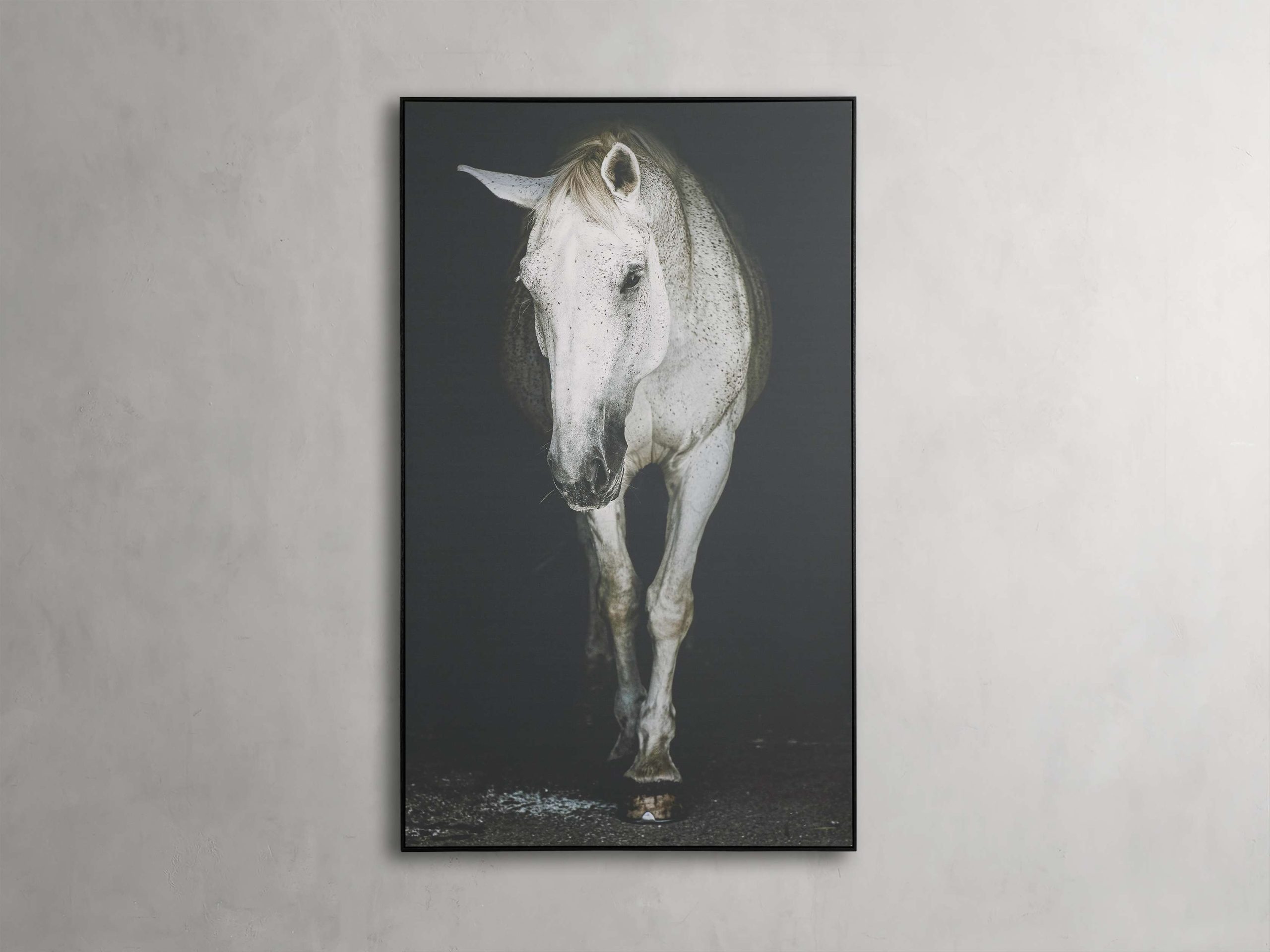 - Capturing a stunning white horse emerging from the shadows, Lara is an oversized high-resolution print on canvas with statement-making appeal for any space.