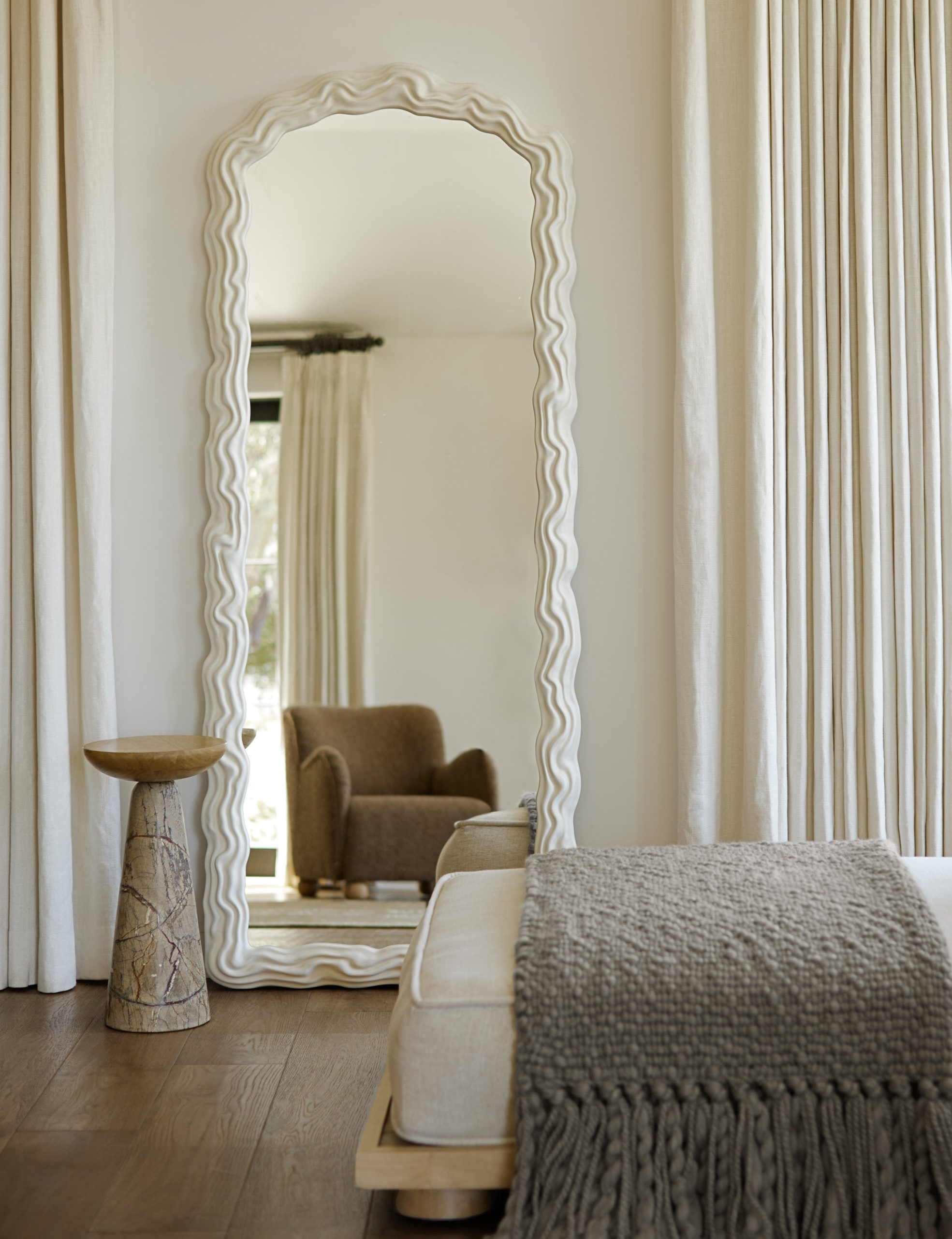 The Anastasia mirror offers fresh texture with a bright appeal. The white frame ripples and folds with a delicate eleganceâperfect for bright and airy curation. This full length mirror is from our exclusive Sarah Sherman Samuel collaboration and features all the trademarks of her warm, edited style.