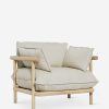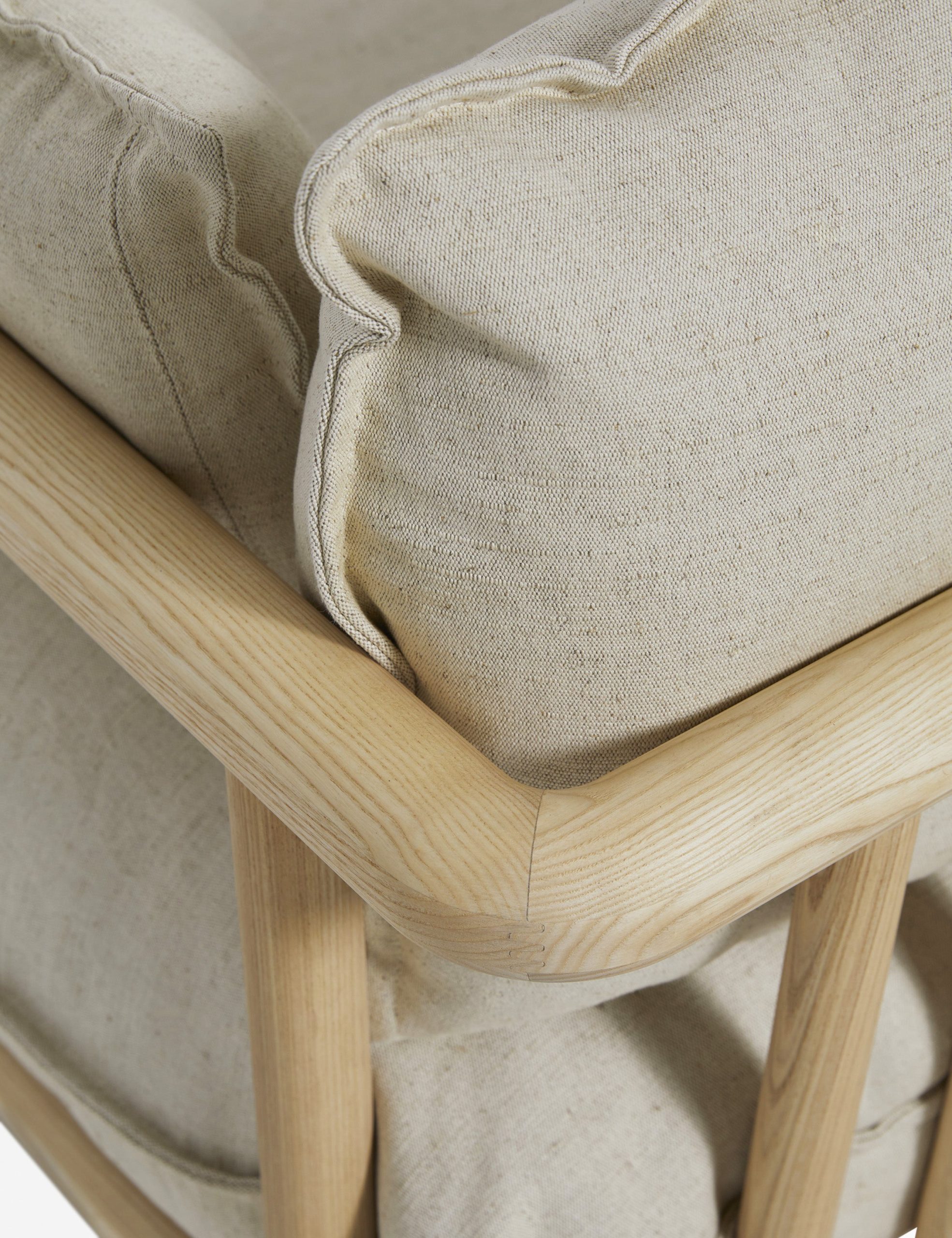 Make a place for casual comfort with the Jerome accent chair. This classic show wood design features a rounded ash wood frame with natural fiber pillow cushions offering an inviting place to land. Style to suit as a rustic club chair or transitional lounger for your living room or study.