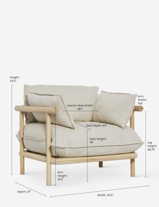 Make a place for casual comfort with the Jerome accent chair. This classic show wood design features a rounded ash wood frame with natural fiber pillow cushions offering an inviting place to land. Style to suit as a rustic club chair or transitional lounger for your living room or study.