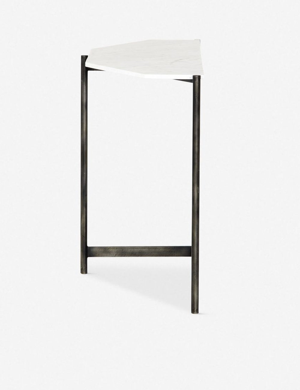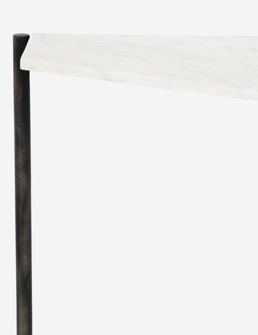 Mixing vintage elements with modern design, this striking console table features a T-shaped iron base, supporting an angular marble top. Luxe with a little edge, we’re loving this piece in entryways and hallways to add an extra dose of glam.