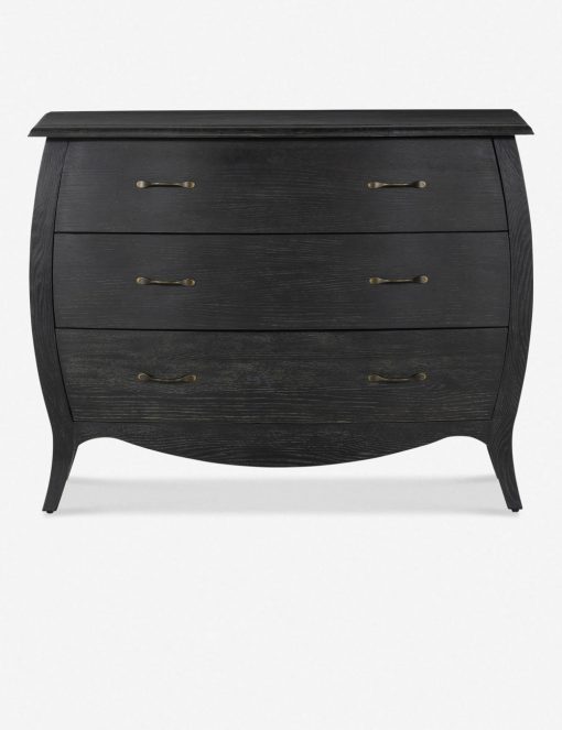 Curved lines and a shapely silhouette fashion this dresser with a whimsical air. Finished with a dark, lightly distressed finish and burnished drawer pulls, this chest of drawers inspires a timeless tone that will instantly elevate your bedroom look.