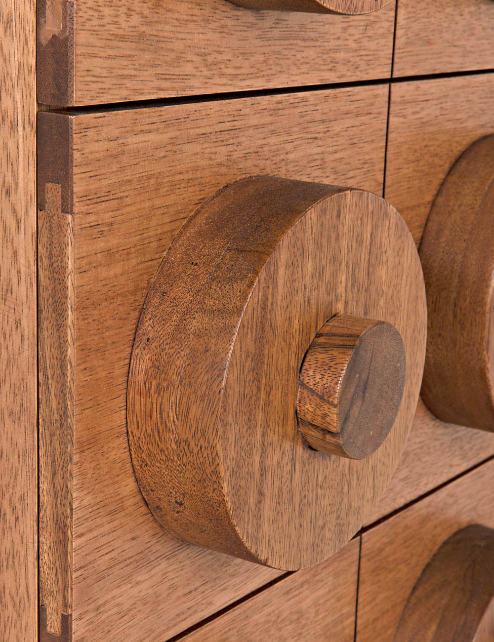 Cylindrical wood drawer pulls clad this dresser with a playful facade for an effortlessly modern feel. We love the compact length and spacious drawers for an eye-catching dresser with small-space potential.