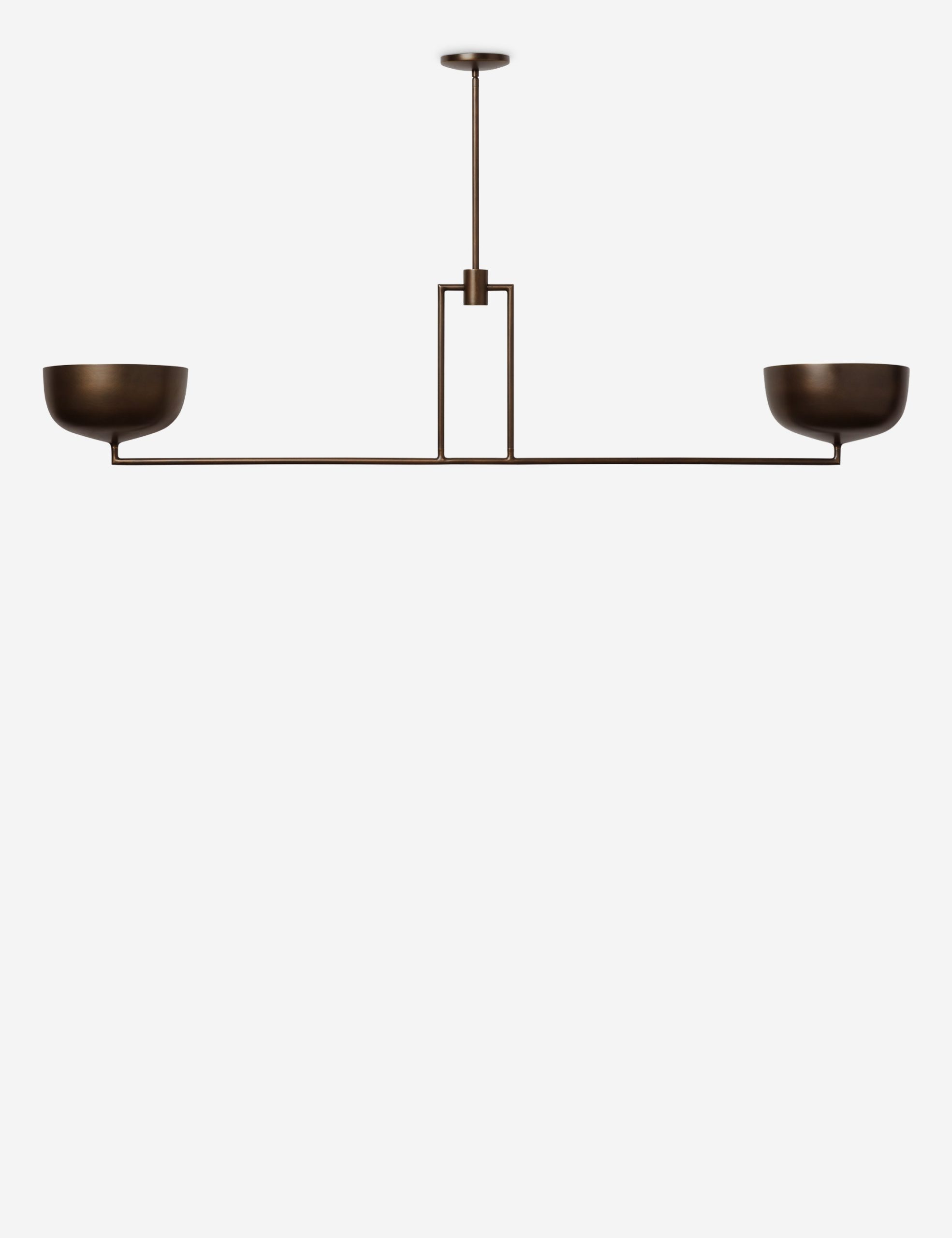 Dome shades bring a soft brilliance to this linear chandelier. Whether in your entryway or over a kitchen island, this modern chandelier offers a brilliant pour of light. The angular frame sets off the two-light design with a clean, streamlined feel.
